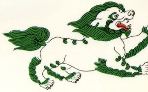 | 1対のスノー・ライオンの勇ましい姿は、チベットの精神的、および世俗的な方策が完全な勝利をおさめることを象徴している。 | |