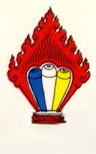 6つの赤い光線は、チベット民族の起源となった、6つの氏族(ミュドゥンテゥク)を象徴している。 赤と濃い青の光線が並んでいるのは、チベットの2つの守護神の堅い決意により、国の精神的、ならびに世俗的な伝統が護られていることを象徴している。ネチュン守護神は赤、シュリ・デビ守護神は黒で表される。 |