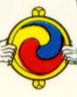 | ライオンが持つ、円形で2つの色が塗られているものは、十善業法と十六浄人法による自律を象徴している。 | |