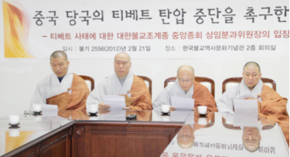 大韓仏教曹渓宗中央宗会は、中国政府のチベット弾圧について「見過ごすことのできない状況」と述べ、中国軍の早期撤退、良心犯の釈放、僧侶への忠節、強制移住政策の廃止を訴えた。