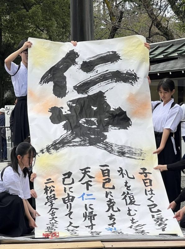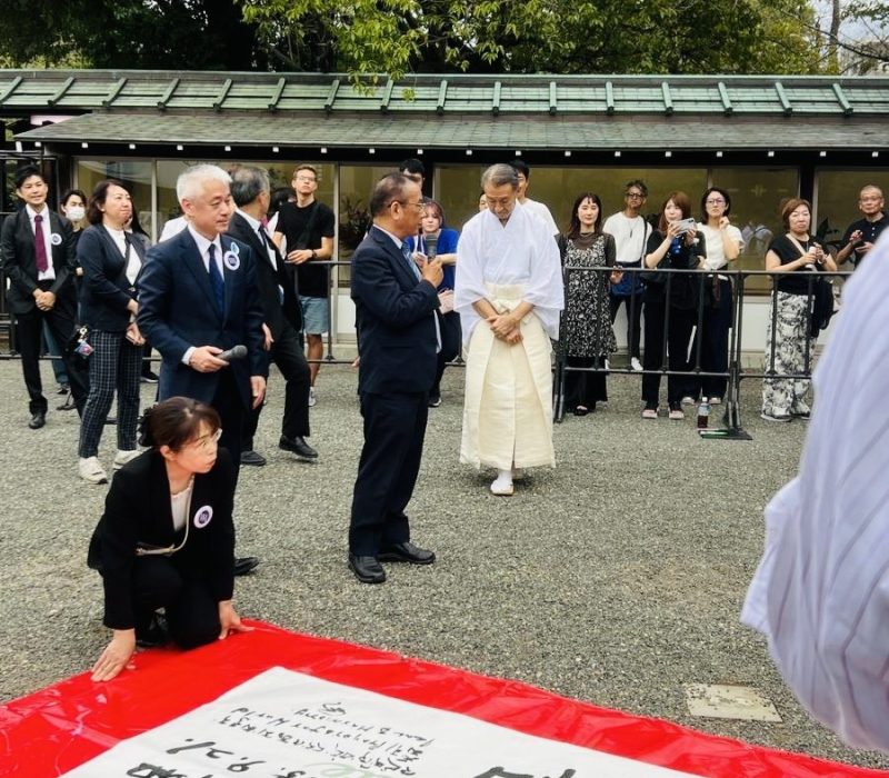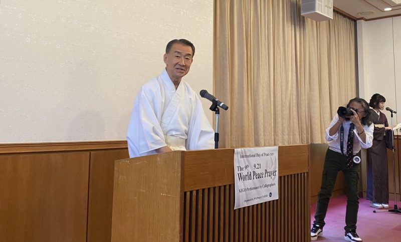書家の栗原光峯氏と二松學舍大学附属高等学校の生徒たちは、クリスタルボウル奏者の演奏を背景に、平和のメッセージを揮毫した。外交団や特別招待客も、それぞれの母語で平和のメッセージをしたためた。