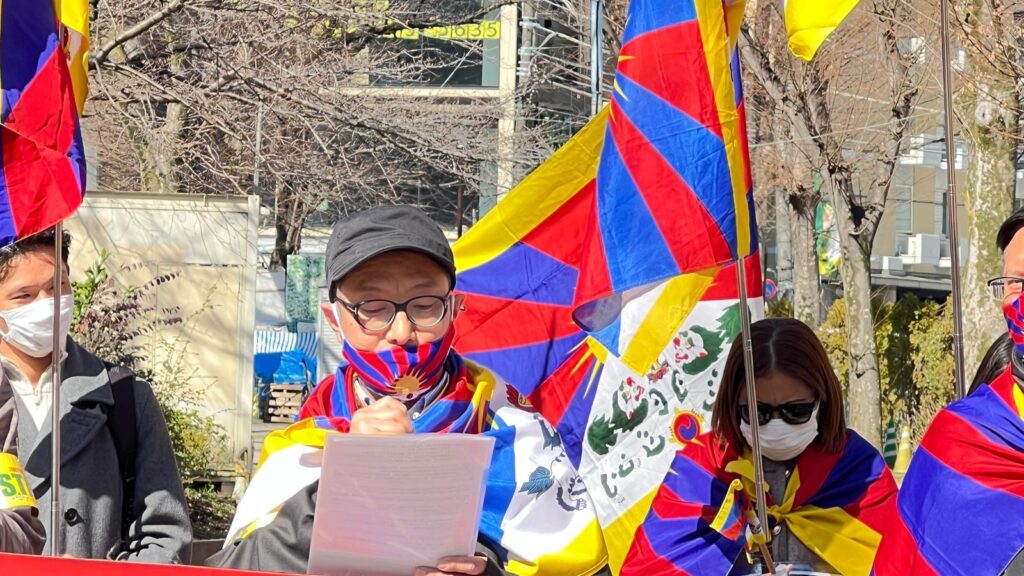 チベット人と日本人の参加者たちは、午前中に東京の中国大使館前で抗議活動を行い、チベットの自由を求め、チベットでの弾圧と文化的ジェノサイド(虐殺)を止めるよう声を上げた。また、チベットにおける中国の植民地的寄宿制学校を止めるよう求めるスローガンも掲げた。SFTJの金田太朗氏は、チベットでの人権状況の悪化について中国政府の注意を喚起する声明を読み上げ、その後、この声明は大使館の郵便受けに投函された。