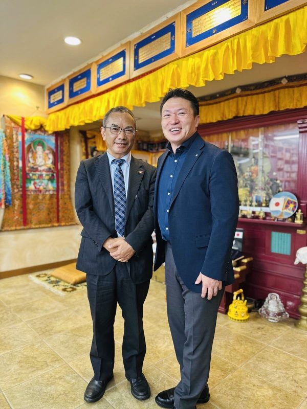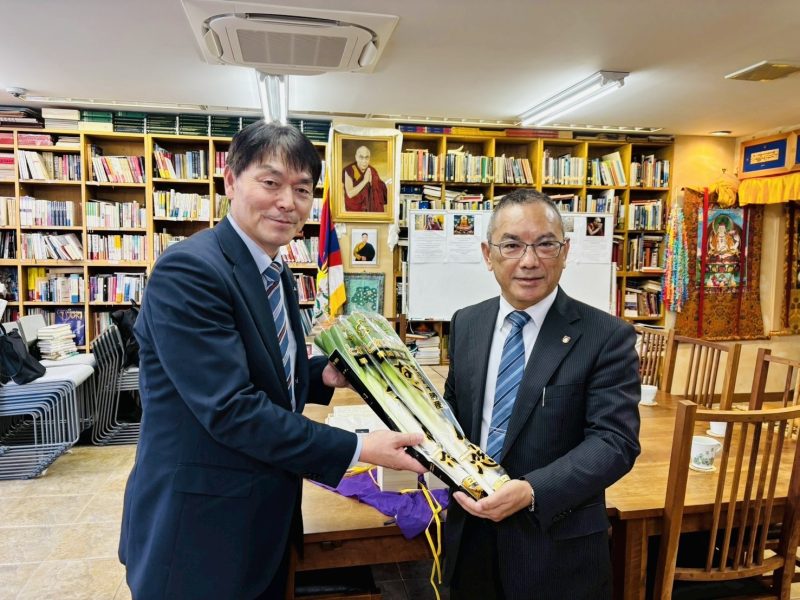 ダライ・ラマ法王日本代表部事務所のアリヤ・ツェワン・ギャルポ博士は、お供え物とメッセージを受け取り、北海道から事務所まで遠路お越しくださった代表団に感謝の意を表した。アリヤ代表は、最近ダラムサラを訪問したことと、ダライ・ラマ法王がご健康でいらっしゃることについて報告し、できるだけ早くダライ・ラマ法王にお供え物とメッセージをお渡しすることを約束した。また、ダライ・ラマ法王の四つの使命について説明し、チベットに関する書籍や冊子を贈呈した。